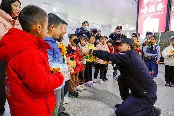 活动在铁路民警欢快的歌声中拉开序幕。一曲唱罢,机器狗闪亮登场,站立着向围观旅客作揖拜年,俏皮可爱的模样赢得掌声雷动。稍后,机器狗又向旅客展示匍匐前进、原地转圈、跳跃、握手、比心等技能,让旅客近距离感受科技创新的力量。另一侧,铁路客运员挥毫泼墨,灵动的“福”字跃然纸上,旅客兴高采烈地接“福”回家。最让旅客感兴趣的还属铁路文创印章“打卡”,一张张精美的明信片,化作一段段美好的旅途记忆,收入行囊也装进心底。